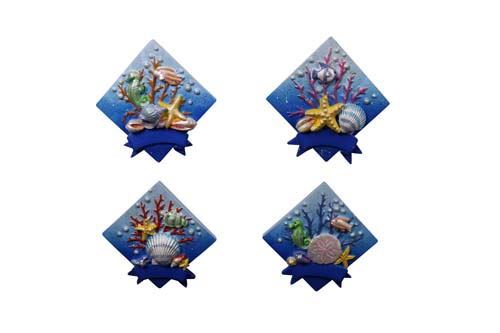 Square Magnets – Assorted – Blue – Shells & Starfish